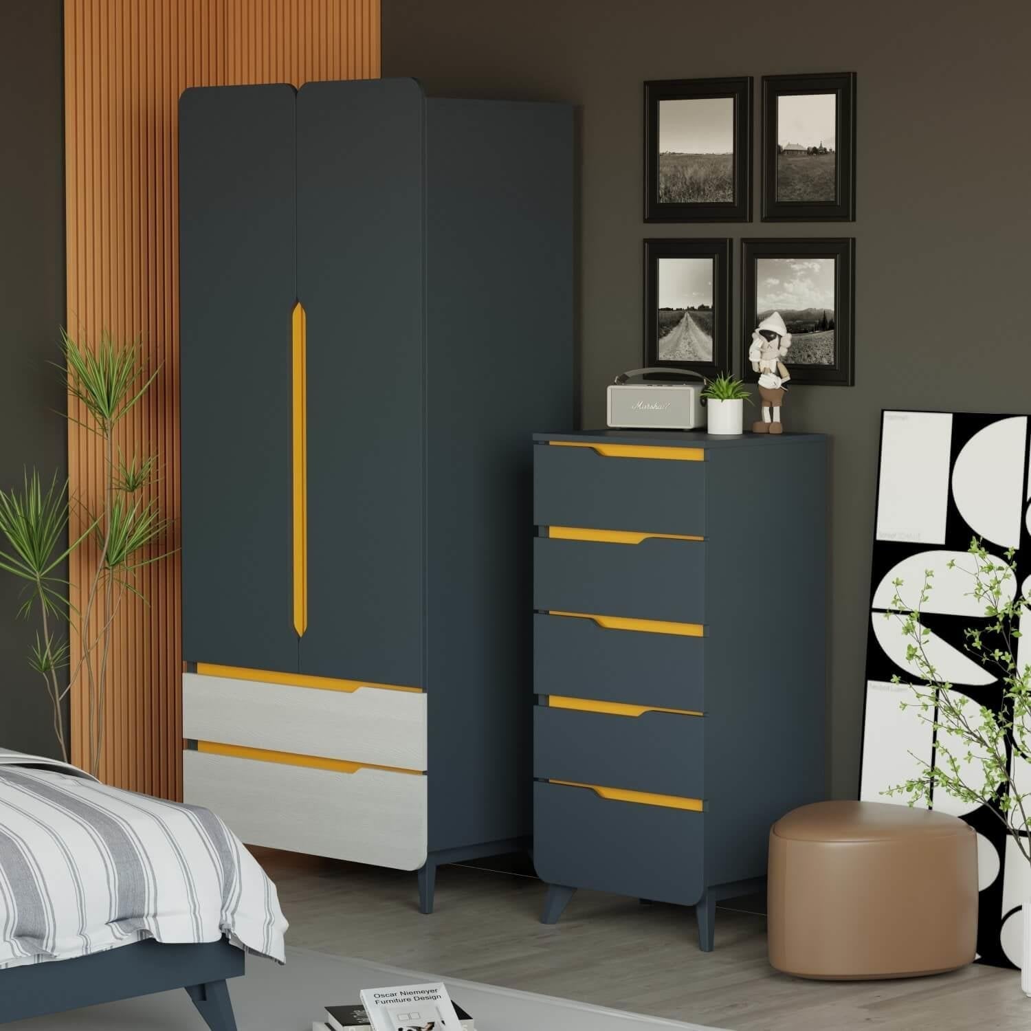 Verona İki Kapaklı Dolap, gençlerin gardıroplarını düzenli ve kolay erişilebilir tutmaları için ideal, estetik ve dayanıklı bir çözümdür.