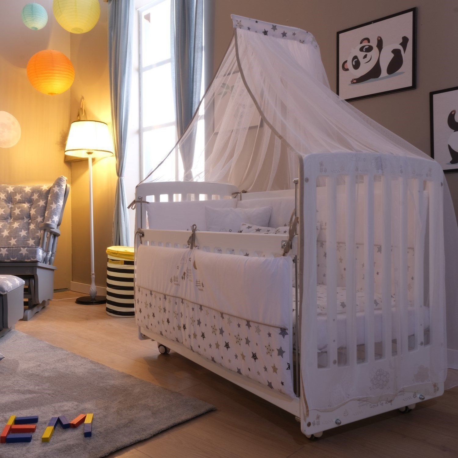 💤 OEKO-TEX Sertifikalı 9 Parçalı Uyku Seti: Yumuşacık pamuklu kumaştan üretilmiştir. 1 adet yorgan, 1 adet çarşaf, 1 adet yastık, 1 adet yastık kılıfı, 1 adet fermuarlı kısa kenar koruma, 2 adet fermuarlı uzun kenar koruma, 1 adet cibinlik tülü, 1 adet cibinlik aparatı