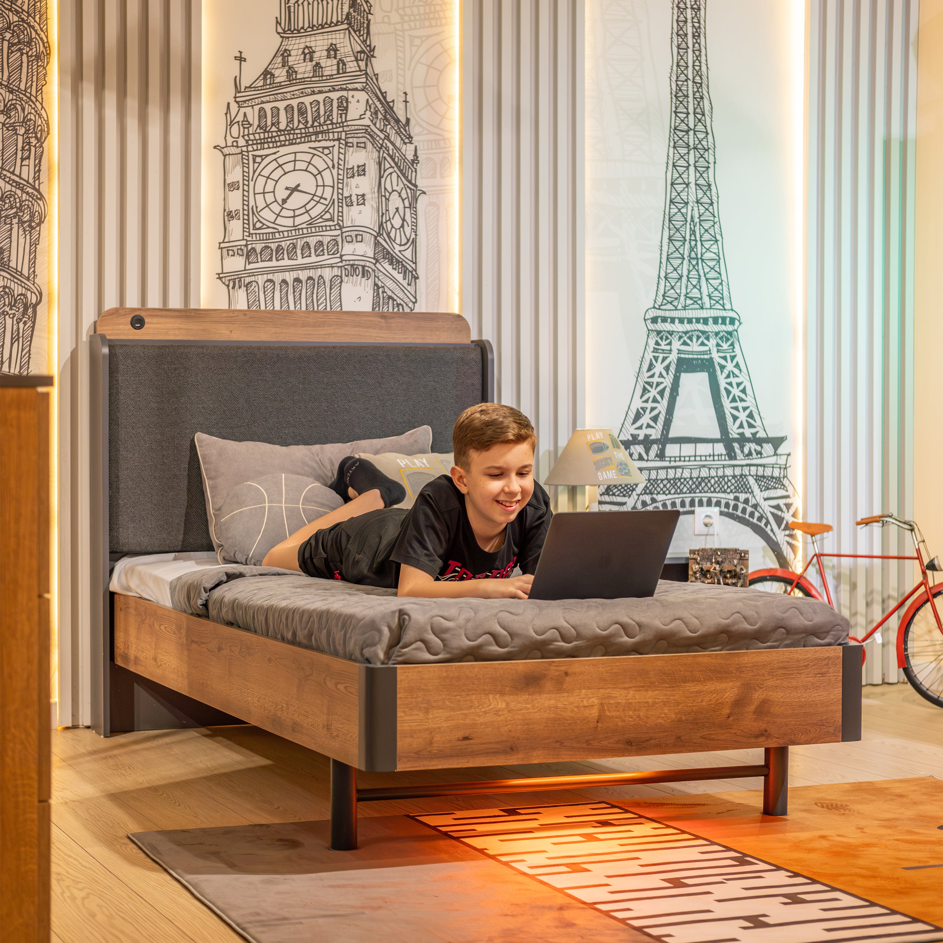 MeltemKids Yeni Active Genç Odası Amortisörlü Bazalı Tek Kişilik Karyola 120x200 cm